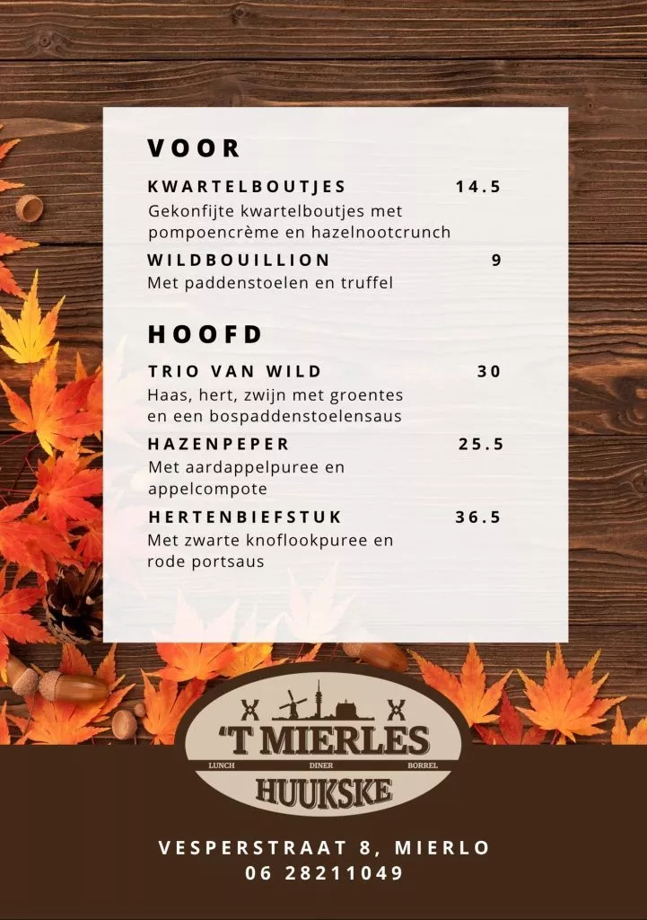 Het gezelligste Huukske van Mierlo! Ons restaurant is gelegen aan de Vesperstraat in Mierlo, vanuit ons terras kijkt u heerlijk het dorp in. Als echte Mierlose vonden wij het leuk om Mierlo echt te betrekken in onze inrichting, voor zowel inwoners als toeristen is het leuk om hier even terug in de tijd te gaan.